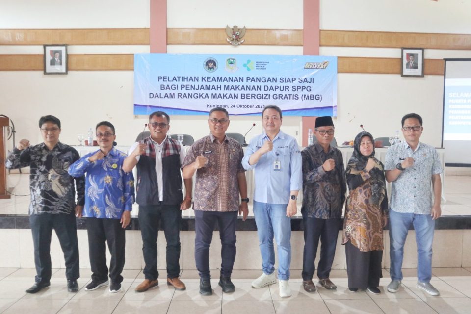 KUNINGAN – Pemerintah Kabupaten Kuningan terus berupaya meningkatkan mutu dan keamanan makanan bergizi bagi masyarakat. Melalui kolaborasi lintas sektor, Himpunan Ahli Kesehatan Lingkungan Indonesia (HAKLI) Kabupaten Kuningan) bersama Dinas Kesehatan dan Satuan Pelayanan Pemenuhan Gizi (SPPG) menggelar Pelatihan Keamanan Pangan Siap Saji bagi Pengelola Makanan, Jumat (24/10/2025), bertempat di Aula Wisma Permata, Kuningan.